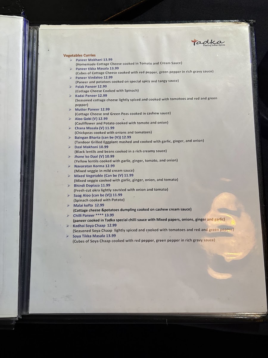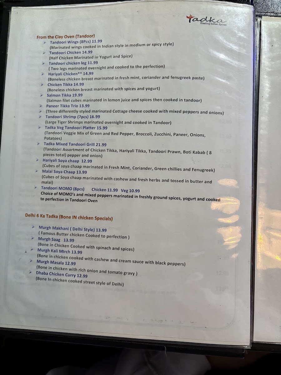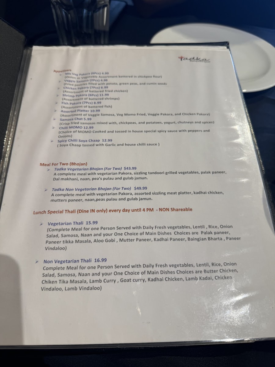 Whether you're indulging in the Assorted Tandoori Grill or savoring the Dhaba Chicken Curry, Tadka promises a meal that resonates with the rich heritage of Indian cuisine.