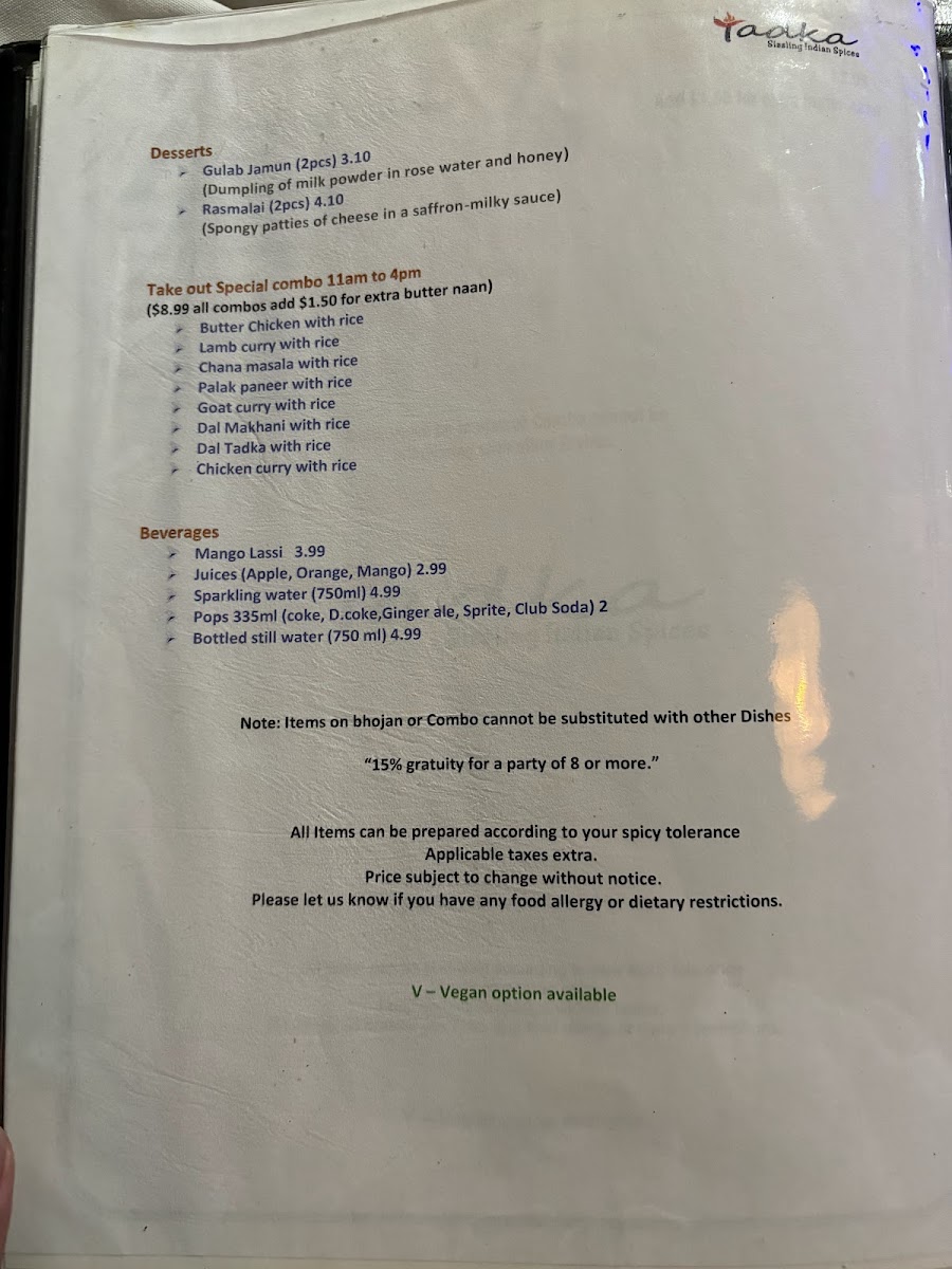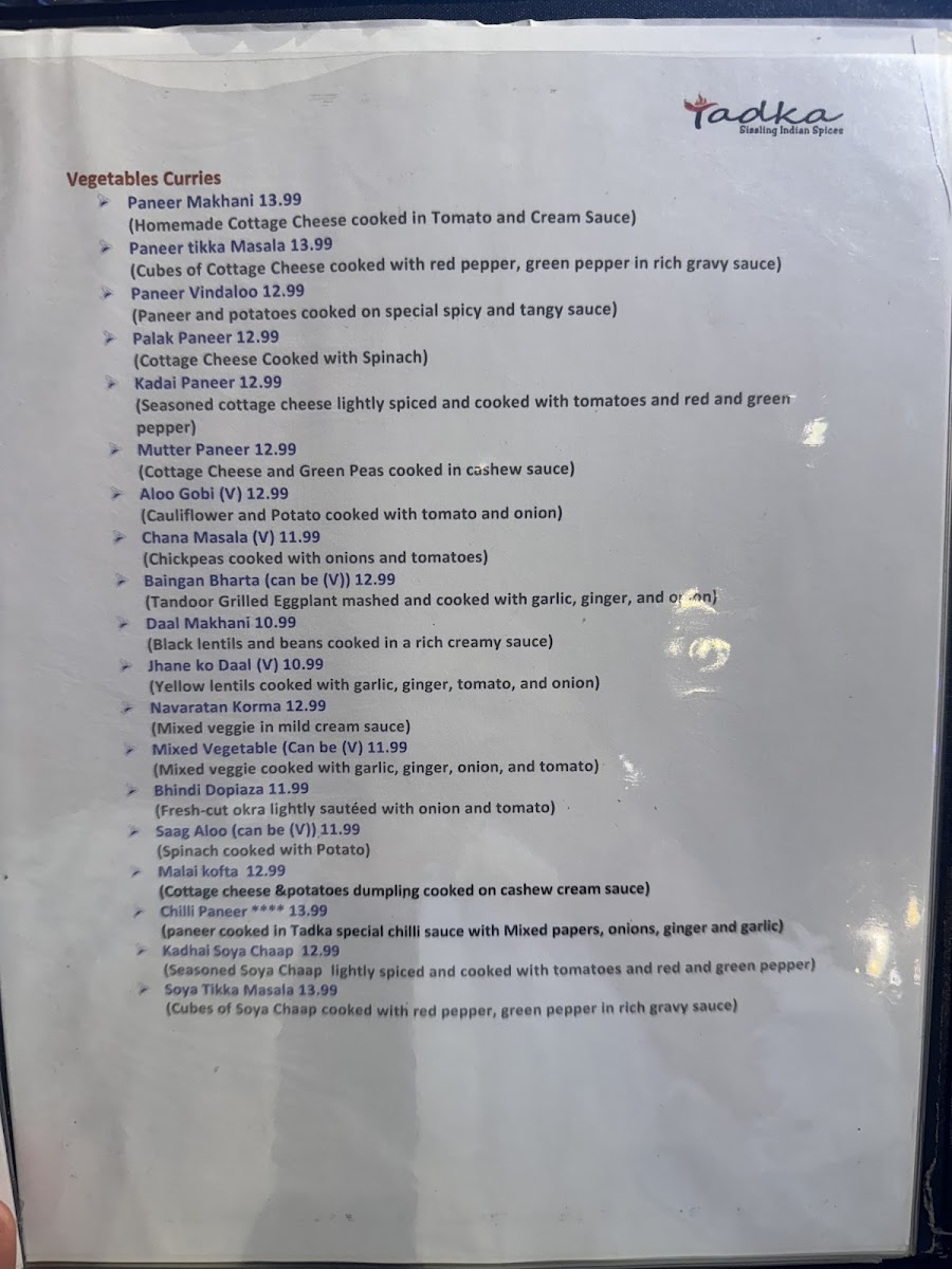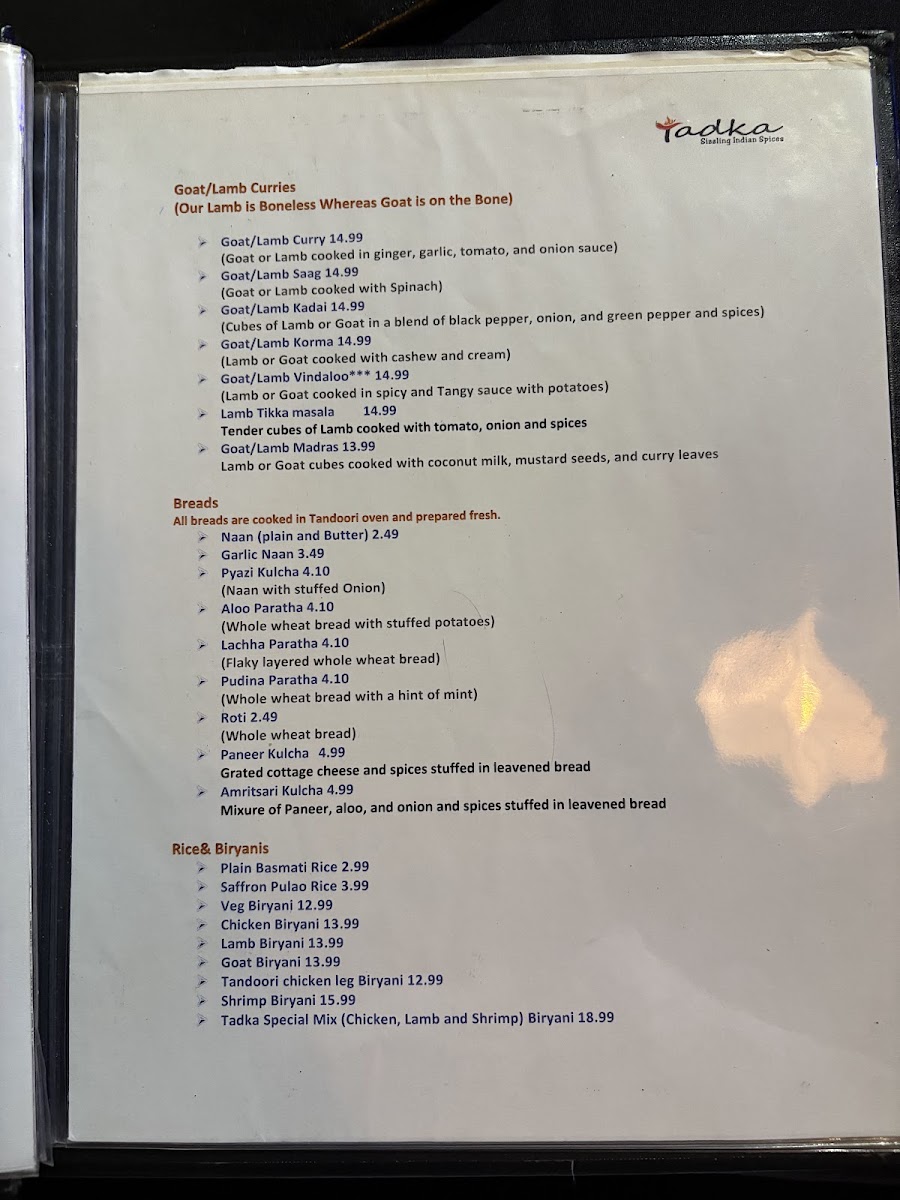 Whether you're indulging in the Assorted Tandoori Grill or savoring the Dhaba Chicken Curry, Tadka promises a meal that resonates with the rich heritage of Indian cuisine.